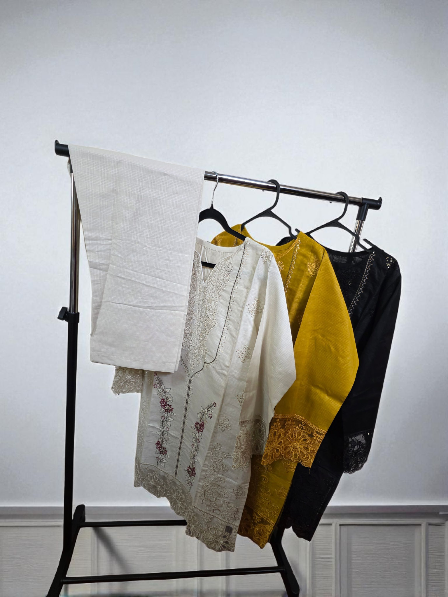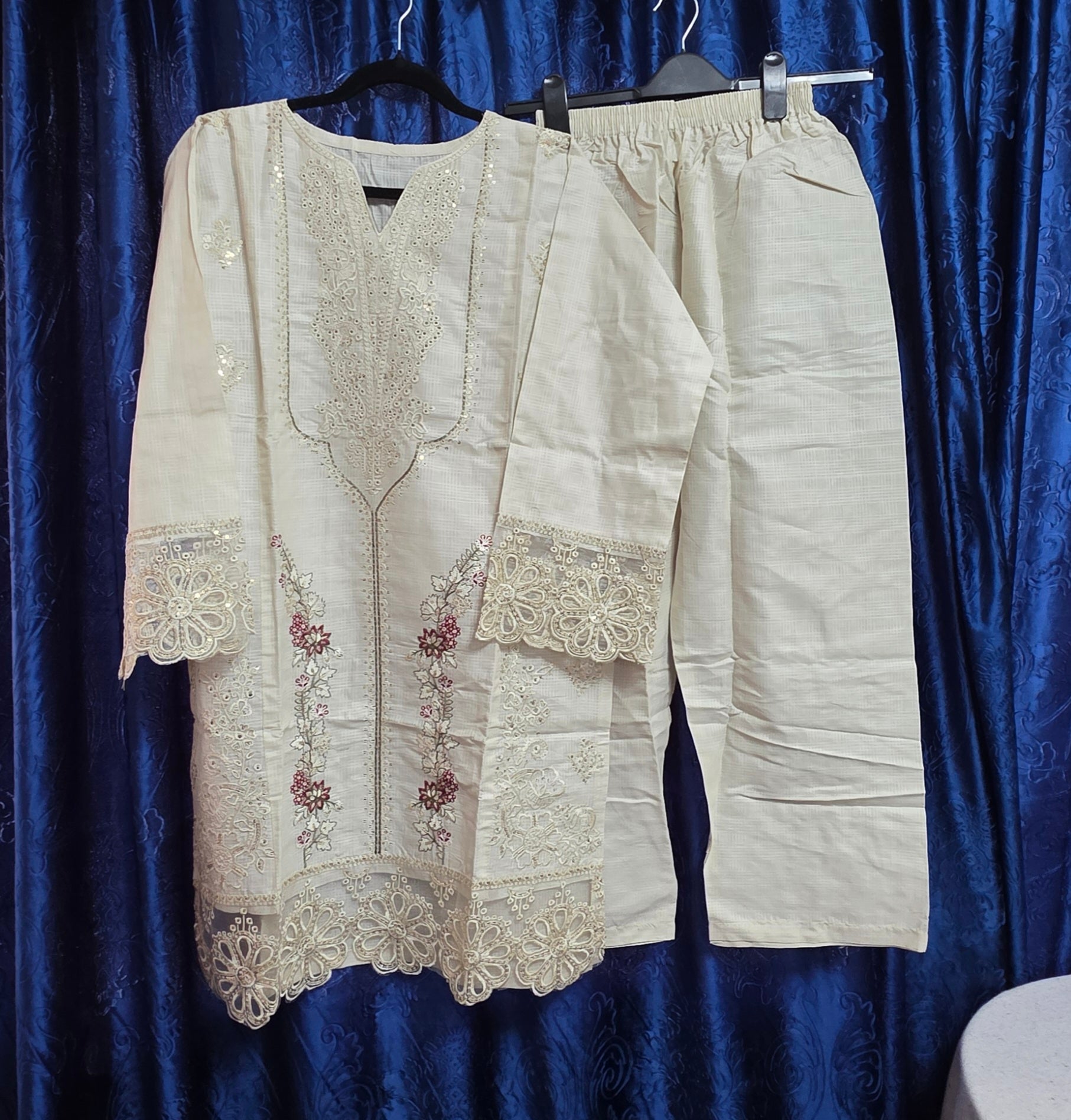 ✨ Discover the charm of our 2pc Coord Glittery Embroidery Set in Cream. This